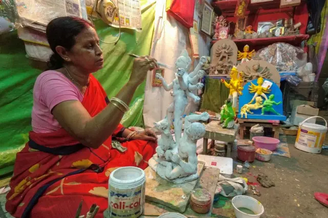 পশ্চিমবঙ্গের নাম করা শিল্পী মালা পাল, দেব-দেবীর প্রতিমা তৈরি করেন।