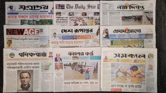 আজকের পত্রিকার প্রথম পাতার খবর, ‘এ মুহূর্তে সর্বোচ্চ অগ্রাধিকার বন্যা মোকাবিলা’।