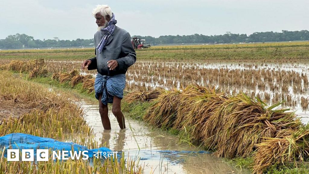 "বৃষ্টির জন্য তো কাজ করতে লোক পাইতাছি না। ধান পাইক্কা গেছে, অহন গাড়িও আইতে ফারতাছে না। কিছু কাটছি, আর এইডি সব রইয়া গেছে," বলেন এই কৃষক।