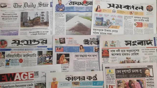 সংবাদ পত্রিকার শিরোনাম নাফ নদী হয়ে অনুপ্রবেশের অপেক্ষায় হাজারও রোহিঙ্গা।