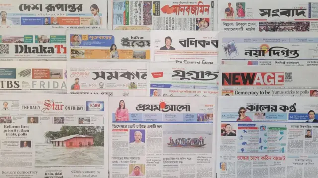দ্য ডেইলি স্টারের প্রধান শিরোনাম, 'Reforms first priority, then trials, polls' অর্থাৎ, 'সংস্কার প্রথম অগ্রাধিকার, তারপর বিচার, ভোট'