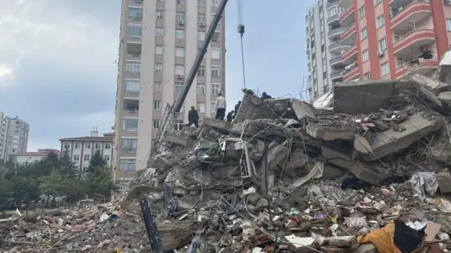 আমি তুরস্কের দক্ষিণাঞ্চলীয় শহর আদানার একটি প্রধান রাস্তায় দাঁড়িয়ে আছি। পাশেই একটি ধসে পড়া বিল্ডিং আর তার ধ্বংসাবশেষ।
