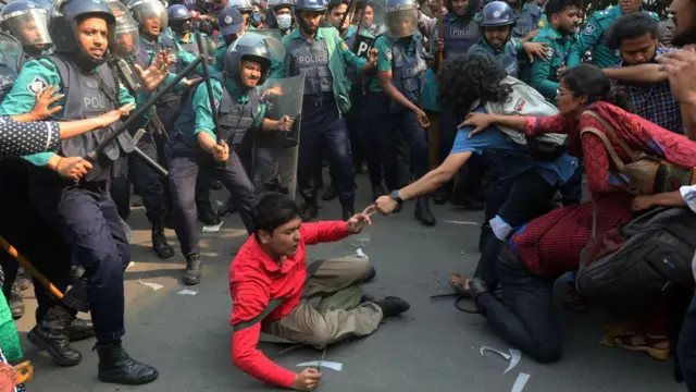 "তারা নির্বিচারে আমাদের ওপর লাঠিচার্জ করেছে। এমনকি পেছন থেকে সিভিলে আইসাও পুলিশ সদস্যরা মারধর করছে," বিবিসি বাংলাকে বলছিলেন ঘটনার সময় আহত সীমা আক্তার।