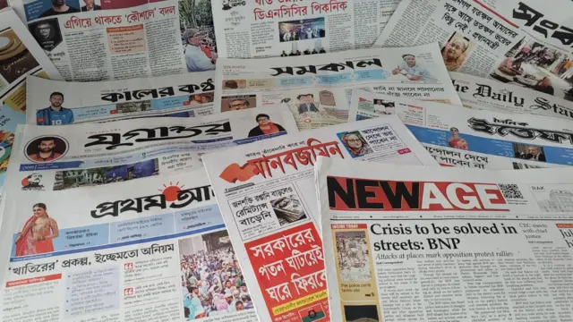 বিএনপির কর্মসূচি নিয়ে নিউ এইজের প্রধান শিরোনাম, “Crisis to be solved in streets: BNP”। বিএনপি সোমবার সোহরাওয়ার্দী উদ্যানে সমাবেশে বলেছে, চলমান রাজনৈতিক সংকট রাজপথেই সমাধান হবে। কথায় কাজ না হলে বিষয়টি রাজপথে মিটমাট করা হবে।