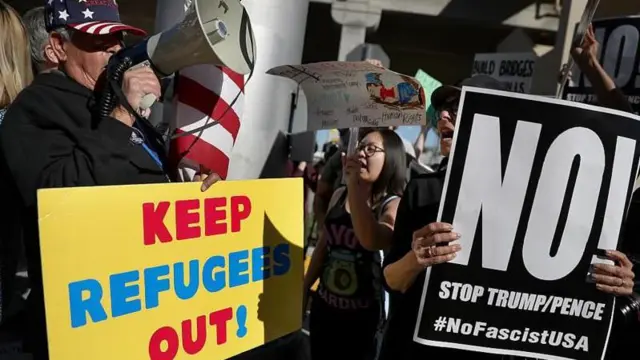 ওই সময় এই 'ভ্রমণ নিষেধাজ্ঞার' বিরুদ্ধে প্রায় তাৎক্ষণিকভাবে, নিউইয়র্ক এবং ওয়াশিংটন ডিসির মতো শহরে বিক্ষোভকারীরা রাস্তায় নেমে আসেন। নিষেধাজ্ঞার পক্ষে এবং বিপক্ষে অবস্থানকারীরা বিমানবন্দরে বিক্ষোভের জন্য জড়ো হন।
