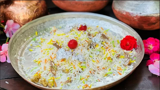 লেখক তারানা হুসেন খান তার “ডেগ থেকে দস্তরখাওয়ান” বইতে এই খাবারটিকে মিষ্টি ও সুস্বাদু ভাতের সাথে মিষ্টি গুলাব জামুন ও মাংসের বল মেশানো খাবার হিসেবে বর্ণনা করেছেন।