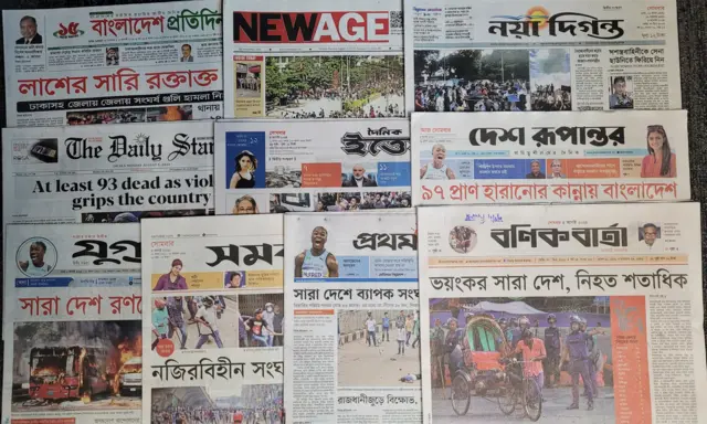 নিউ এইজের প্রথম পাতার খবর, ‘Mobile internet shut down across Bangladesh again’ অর্থাৎ, ‘সারা বাংলাদেশে আবার মোবাইল ইন্টারনেট বন্ধ’।