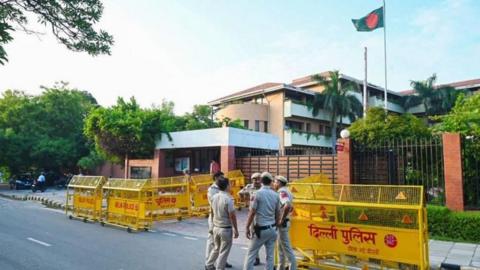 - ভারতের দিল্লিতে বাংলাদেশ হাইকমিশন কনস্যুলার সেবা ও ভিসা দেওয়ার কার্যক্রম সাময়িকভাবে বন্ধ করে দিয়েছে। ঢাকায় কর্মকর্তারা বলছেন, গত কয়েকদিনে ভারতে হাইকমিশনের সামনে ও বিভিন্ন জায়গায় বিক্ষোভ ও শিলিগুড়িতে বাংলাদেশের ভিসা সেন্টারে হামলার ঘটনার পর বাংলাদেশের হাইকমিশন, উপদূতাবাস ও ভিসা সেন্টারগুলোতে নিরাপত্তা ইস্যু প্রকট হয়ে দাঁড়িয়েছে।