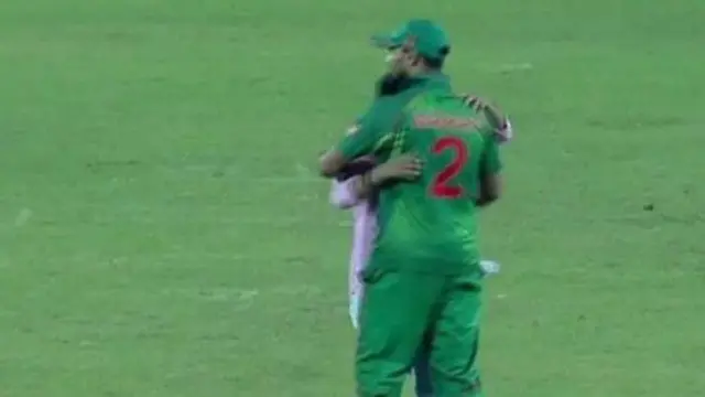 সে ছুটে গিয়ে বাংলাদেশ দলের অধিনায়ক মাশরাফি বিন মুর্তজাকে জড়িয়ে ধরে।