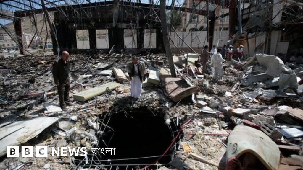 ছবির ক্যাপশান, ইয়েমেনের সানায় সৌদি আরবের নেতৃত্বে কোয়ালিশন বাহিনীর বিমান হামলায় বিধ্বস্ত ভবন