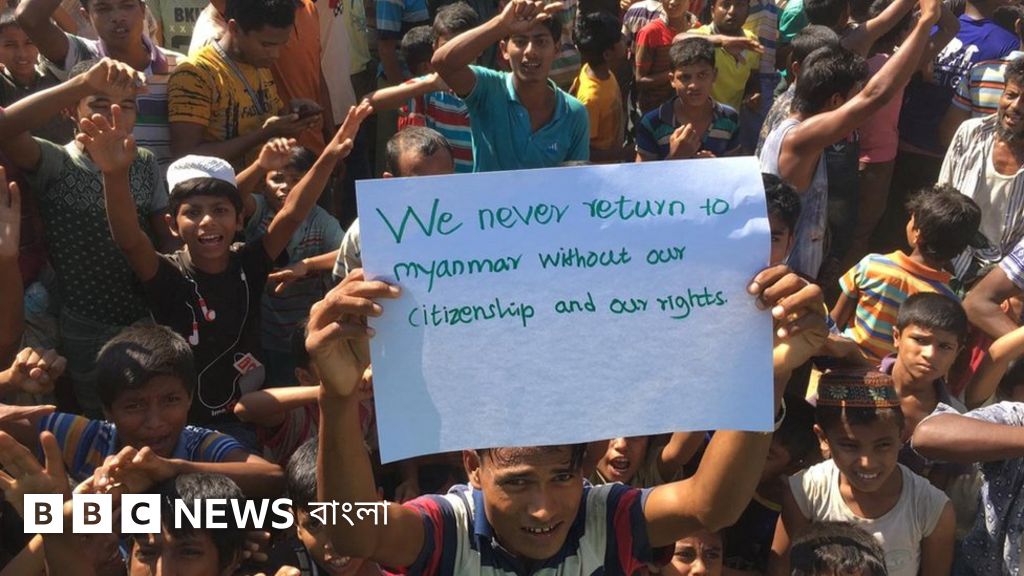 রোহিঙ্গা সংকট: প্রত্যাবাসনের জন্য জড়ো করা শরণার্থীরা 'যাবো না' বলে স্লোগান দিচ্ছে