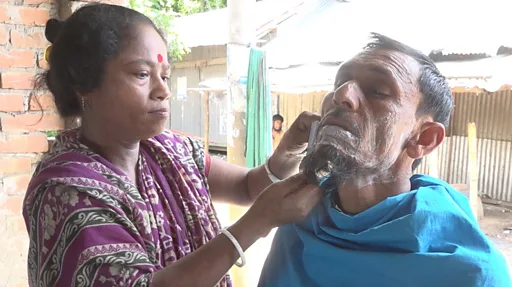 আগে তার স্বামী নাপিত ছিলেন। স্বামীর থেকেই এই কাজ শিখেছেন শেফালী রানী।