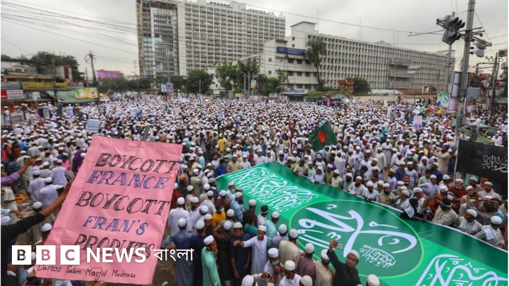 'বয়কট ফ্রান্স' আন্দোলনের অংশ হিসেবে ঢাকায় বায়তুল মোকাররম জাতীয় মসজিদের সামনে সোমবার হাজার হাজার মানুষ বিক্ষোভ দেখিয়েছে। তারা ফ্রান্সবিরোধী শ্লোগান দেয়ার পাশাপাশি তারা প্রেসিডেন্ট এমানুয়েল ম্যাক্রঁর কুশপুত্তলিকা পোড়ায়।