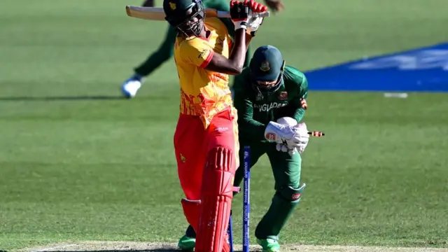 কিন্তু তৃতীয় ও চতুর্থ বলে একটি লেগ বাই চার ও একটি ছক্কা মারে জিম্বাবুয়ের ব্যাটসম্যানরা