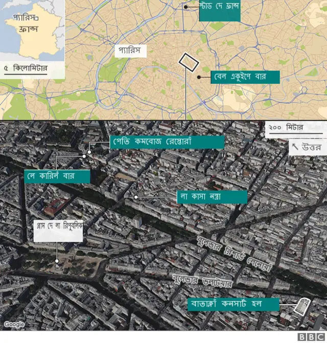 মানচিত্রে প্যারিস হামলা: কোথায়, কখন ঘটেছিল ঘটনা