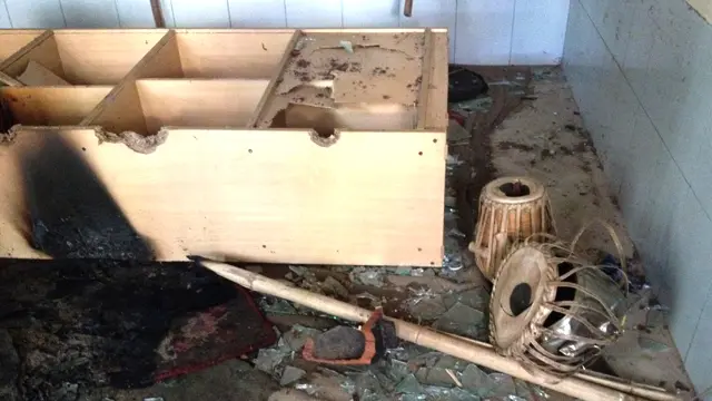 মঙ্গলবারের হামলায় আলাউদ্দিন খাঁর ব্যবহৃত বহু জিনিসপত্র ভাঙচুর হয়েছে, অগ্নিদগ্ধ হয়েছে এবং লুঠ হয়েছে।