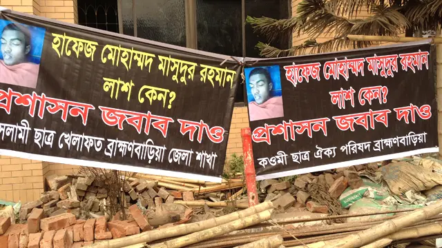 কান্দিপাড়ায় জামেয়া ইসলামিয়া ইউনুসিয়ার সামনে এই ব্যানারটিতে যে প্রশ্ন তোলা হয়েছে, ব্রাহমণবাড়িয়ায় সহিংসতার পেছনে এর একটি গুরুত্বপূর্ণ প্রভাব রয়েছে।