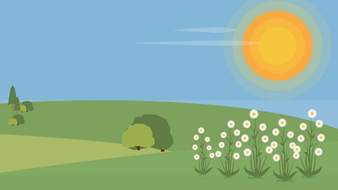 The golden sun, white flowers.