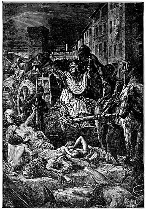 An illustration of The Black Death or Bubonic Plague in Avignon, France (circa 14th century). Vintage etching circa 19th century.