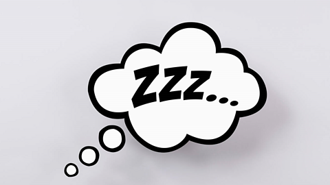 Thought bubbles work like speech bubbles but with a couple of big differences. In thought bubbles, these aren't words or things that characters say out loud. They are things they think to themselves. A thought bubble is usually a cloud shape with a tail, or like in this picture, smaller bubbles pointing to the character who is thinking. In this example the 'zzz' would tell the reader that the character is thinking about sleep... or is maybe very bored! A lightbulb in a thought bubble is a famous way of showing that the character has had an idea. (fStop Images GmbH / Alamy Stock Photo)