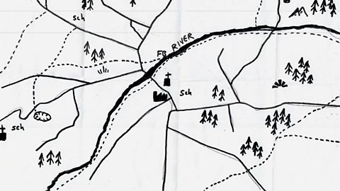 Maps have symbols - drawings of actual landscapes and features that use lines and shapes to represent real-life objects like forests, motorways and the coastline. Maps can also be artistic and imaginative, such as sketch maps or maps made out of leaves or they can be very detailed and accurate like the Ordnance Survey maps of Northern Ireland.