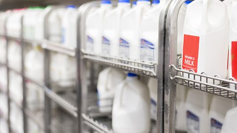 Gloine agus buidéal bainne. *A glass and bottle of milk.*