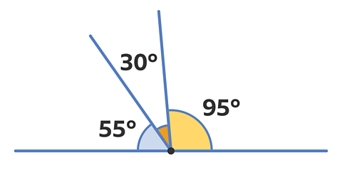 Image caption, If the straight line is divided into three angles, all three angles add up to 180°.