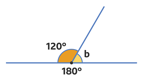 Image caption, If the straight line is divided into two angles, and we know one of the angles, we can work out the other. 120° + b = 180°
