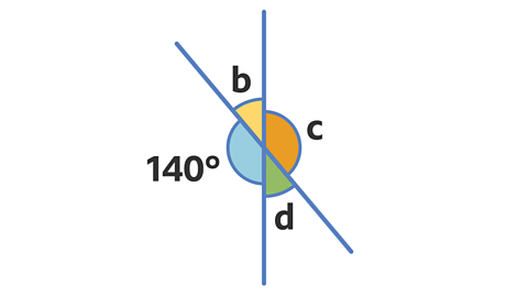 ✓ Angle b is on a straight line with 140°, so it must be 40°.