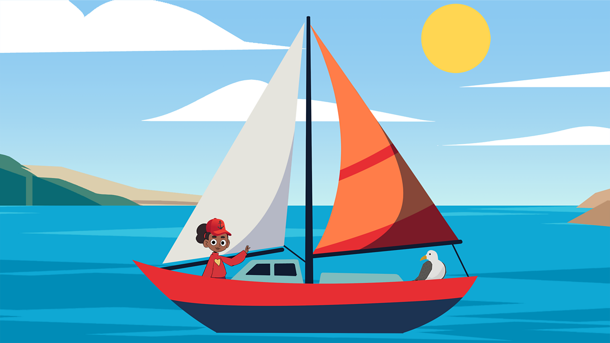 A sailing boat uses a large open sail to use air resistance to travel through the water.