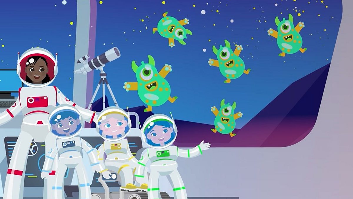 Captain Mahari: Our challenge today is to spot things around the spaceship and count how many of them there are. Switch on your number screens. First of all, Sai, how many dogs can you see?