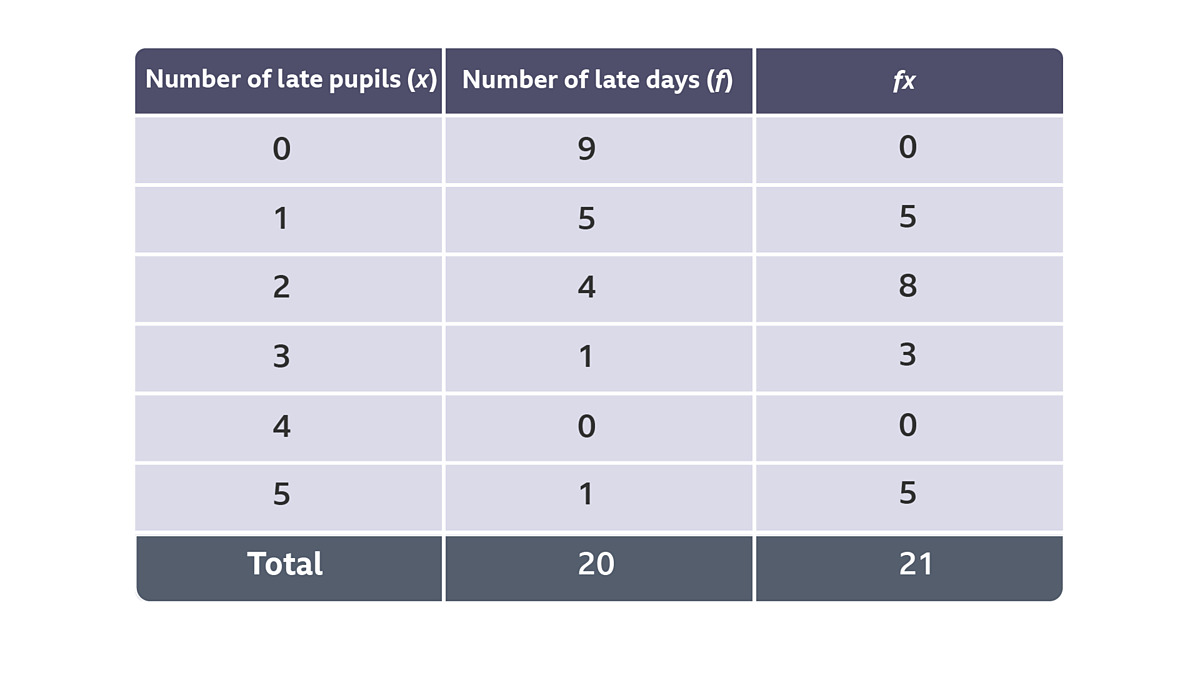 Image caption, Find the mean number of pupils who were late.