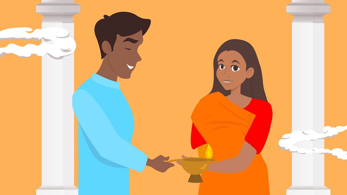 At Diwali, special lamps called divas are lit and many people come together to celebrate.