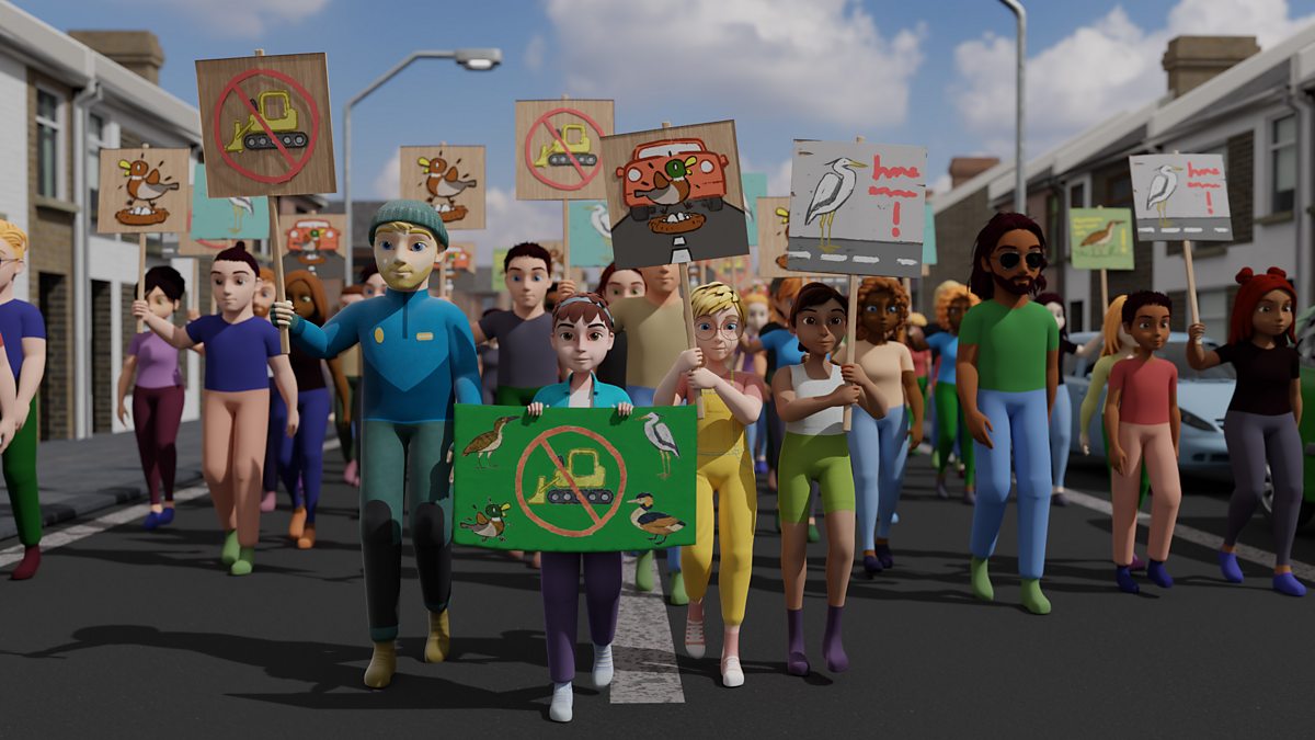 Rhys, Lina and Efa decide that they want to help save the bird reserve. They discover that there are different ways of letting people know about their campaign and to persuade people to change their decisions.