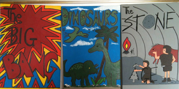 Just as I had resigned myself to the fact that my business was going to be a non-starter I got my first call from the local school who wanted a mural for the computer room/library. This mural consists of 20 canvas paintings making up a timeline. This stretches from the Big Bang to present day. I finally have my first paid commission!
