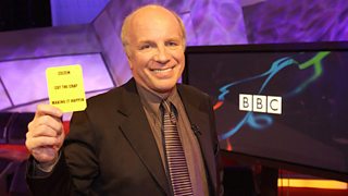 Greg Dyke with a yellow 'Cut the Crap' card