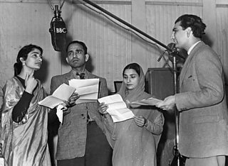 Romeo and Juliet - Rehearsing for the broadcast of a Hindustani verse translation of Romeo and for BBC Eastern Service: Santosh Kashyap, Hafeez Javed, Gaular Javed, Aslam Malik (producer) (1947)
