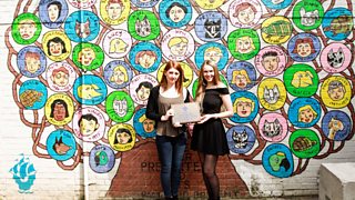 The 2005 mural design depicted thirty-one of the programmes Blue Peter presenters past and present, including former presenter Zoe Salmon who last Thursday presented the now 19 year old Emma with the plaque originally positioned on the wall next to the design. Emma is now studying fine art and art history at Plymouth University.