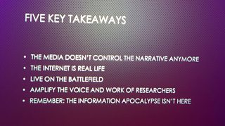 Ending on a positive note, he left his audience with some key messages to remind us that the infowars are not lost - yet: