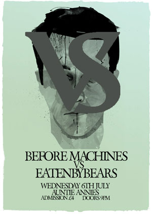 This week's 'Gig of the Week' is indeed a little bit special. Welcome to the battle! Before Machines and EatenByBears will fight it out (through the medium sound of course) at Aunt Annies tomorrow, in a unique 'battle of the bands'.