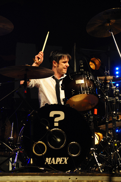 Back in the circus and Lafaro are making a more traditional racket. There's no sign of the recently announced third album material - just solid hit after solid hit. Even a non-vintage performance is bags of fun with Johnny Black's customary caustic tongue and the abundance of riffs allowing the band's increasing popularity to be demonstrated by the ever growing mosh-pits that accompany them at this festival and the impressive number of punters in Lafaro t-shirts we spot all day long. It's a slightly shortened set however both because of a misbehaving kick drum mic and a moonlighting drummer - Alan Lynn needs time to get (literally) suited and booted for Therapy?, who's regular sticksman is off on maternity leave.