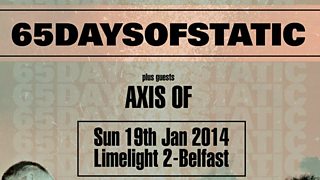 Opening for a band with such a dedicated following as Sheffield's 65daysof staticwas always going to be a tall order. Thankfully the near capacity crowd at Belfast's Limelight 2 are greeted by our very own Axis Of. Years of extensive touring, along with the release of their debut album 'Finding St Kilda', have seen this riff heavy three piece grow tighter in both a musical and performative sense. The band's beautifully constructed rock captured the audience from the opening notes, bringing people forward towards the barriers in approval.