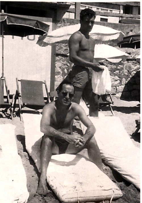 Later in his life Billy Hill published a wonderful autobiography called Boss of Britain's Underworld - and in the book he outed the by now famous tycoon, George Walker, as his sidekick. He confirmed it by publishing this photo of him and a young George Walker on the run sunbathing in the beach at Cannes.