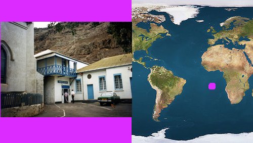 This is a picture of their prison, plus a map - the purple blob shows where St Helena is.