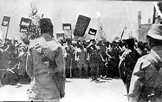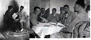 The King agreed. But it was too late to save his regime. At the end of 1929 the British sent a plane to rescue him and his family. Mahmud Tarzi also fled. But here is a strange photograph of the remnants of Amanullah's regime waiting to be executed.