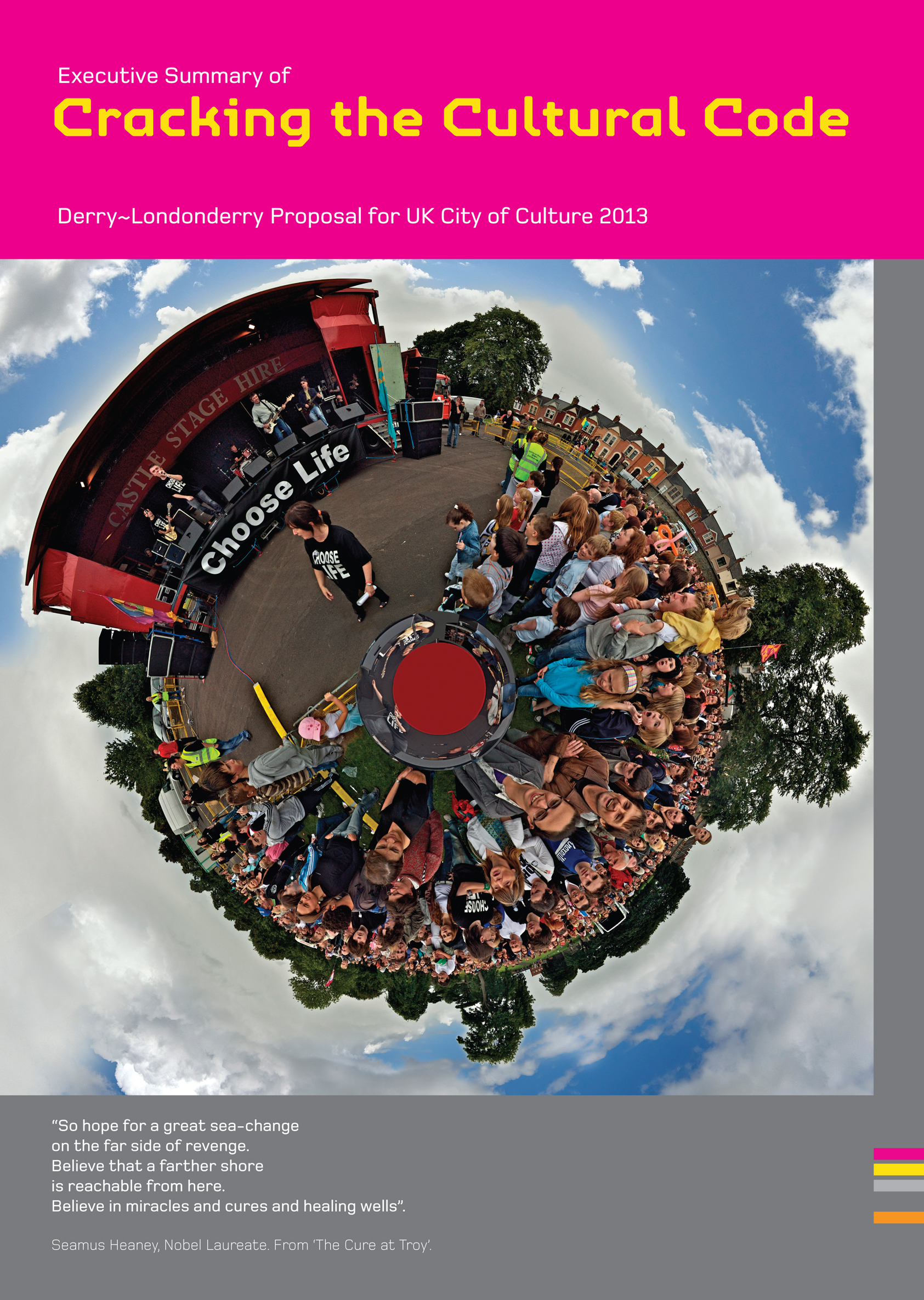 I'm not saying let's aim to be a successful failure, nor am I ignoring the voices anxious to see the bid work, but worried that the moment has gone. Maybe we should look at the very powerful lines from Heaney's "The Cure at Troy" quoted on the front cover of the bid