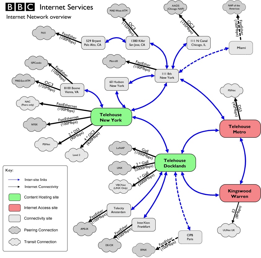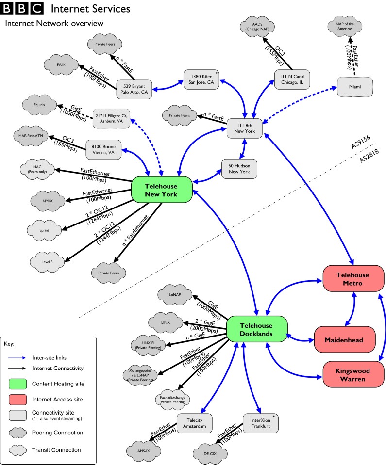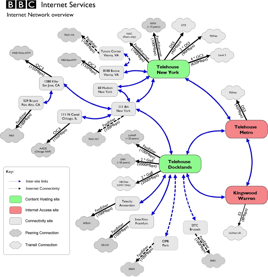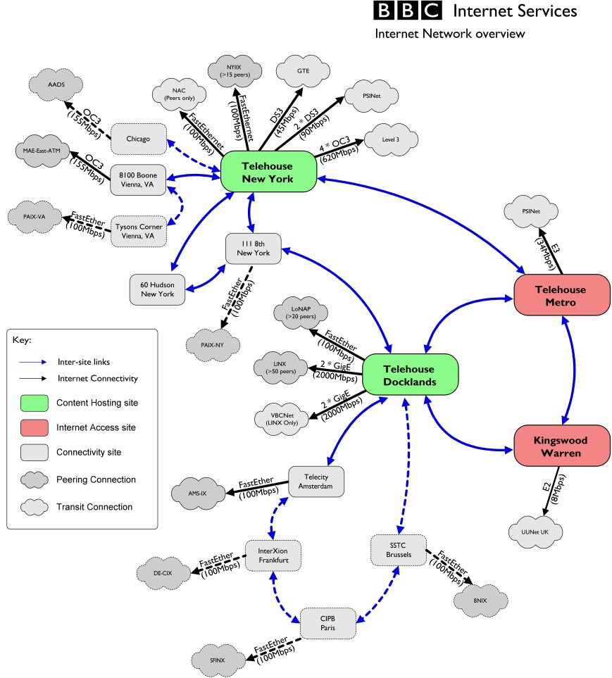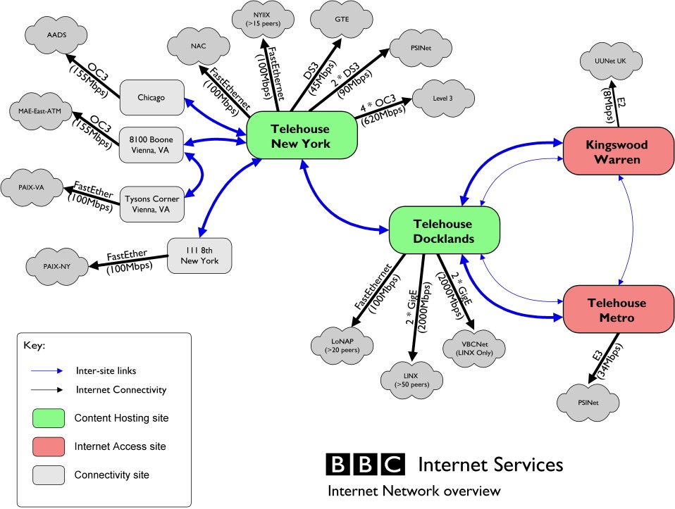 As the site grew, we hit the limit of our Pipex line and set up some servers in Telehouse Docklands where higher-speed connections were cheaper. This was important with all the streaming that became popular as the webcasts had content not entirely covered by Radio or TV.