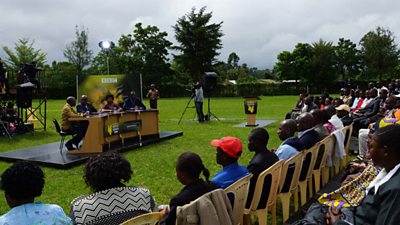 Recording outdoors we are always at the mercy of the elements and some may say planning an outside broadcast in Western Kenya in September is asking for trouble. It rained, we ran for cover. It stopped, we started again. The debate was heated. The weather was not.