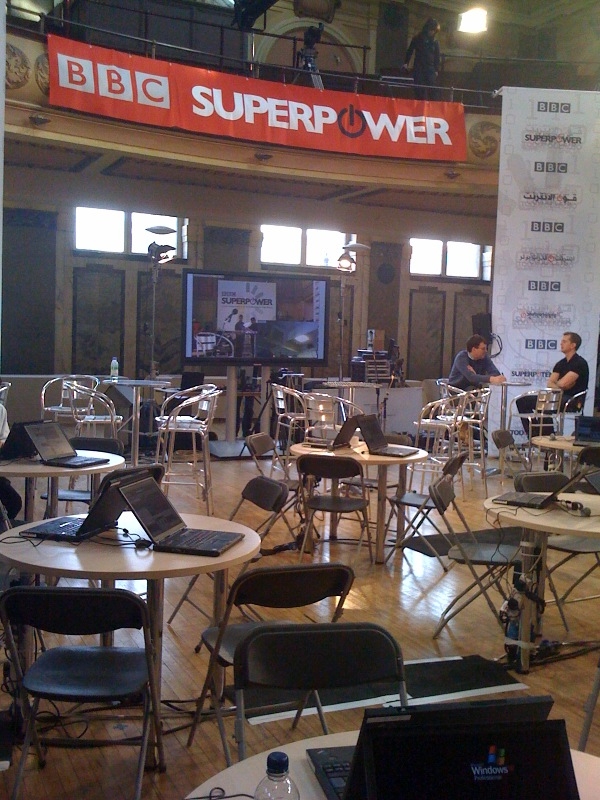 SuperPower nation has now been live for 26 minutes. People have started coming in and others have joined in from their countries via webcam. Francisco Toro , a venezuelan blogger in Canada, is on his webacam at the moment chatting to people in the room. He blogged about taking part in SuperPower nation on his blog Caracas Chronicles.