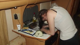 Once everything was tidied, we decided to take some cheeky selfies, only to find out that our hair looked a right state. But what’s a gal gonna do when she ain’t got no shower? EUREKA! We washed our hair in the sink. However, this proved to be a little more difficult than we anticipated.